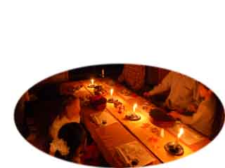 ろうそくの薄明かりの中座っていると、お着物を着たご婦人が一人入ってこられ、