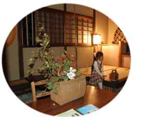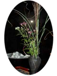 上がり口すぐには、大きな木鉢に秋の七草がたっぷりと生けられています。(秋の七草・・・すすき、おみなえし、ふじばかま、ききょう、萩、撫子、くず。)