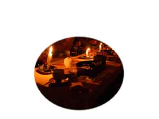 オレンジ色の夕焼けのようなろうそくの灯りだけ。